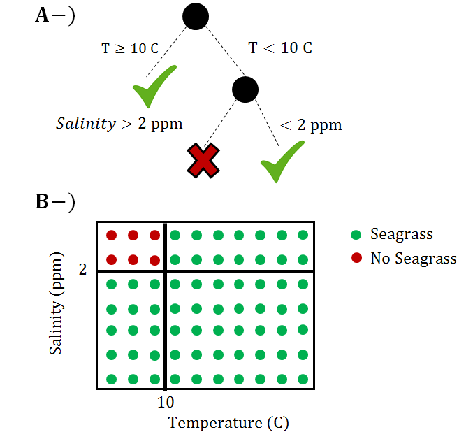 An illustration of a decision tree for classification in the context of seagrasses is given below: