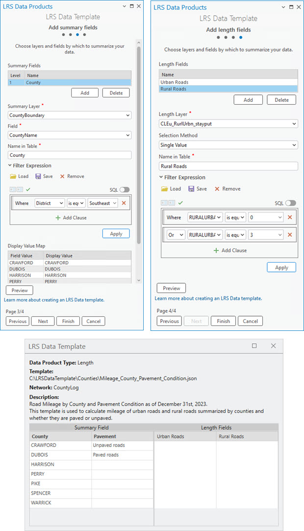 As the use of LRS data continues to grow within organizations that are utilizing Roads and Highways and Pipeline Referencing, the need to leverage this data for decision-making and compliance reporting has grown as well. New tools in this release support the creation of LRS data products that can be utilized to create reports, dashboards, and other visualizations. Templates reference LRS events and other layers and how they are to be summarized for the desired reporting product.