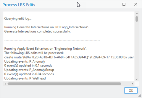 Depending on the configuration of the LRS, data editors may need to run up to 4 different geoprocessing tools to ensure that events, derived networks, and intersections are updated and aligned with their edits to the route. While these tools could be added to a model or in a python script to simplify this post processing, the new Process LRS Edits tool in ArcGIS Pro will automatically run these tools to ensure that all the events, routes, and intersections are updated to stay in sync with the route that was edited.