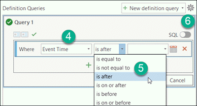 - Click Apply followed by OK button to apply this dynamic definition query to your feature layer.
