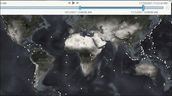 - Enable the time slider and navigate to any time window to see the map showing earthquakes from that specific time window.