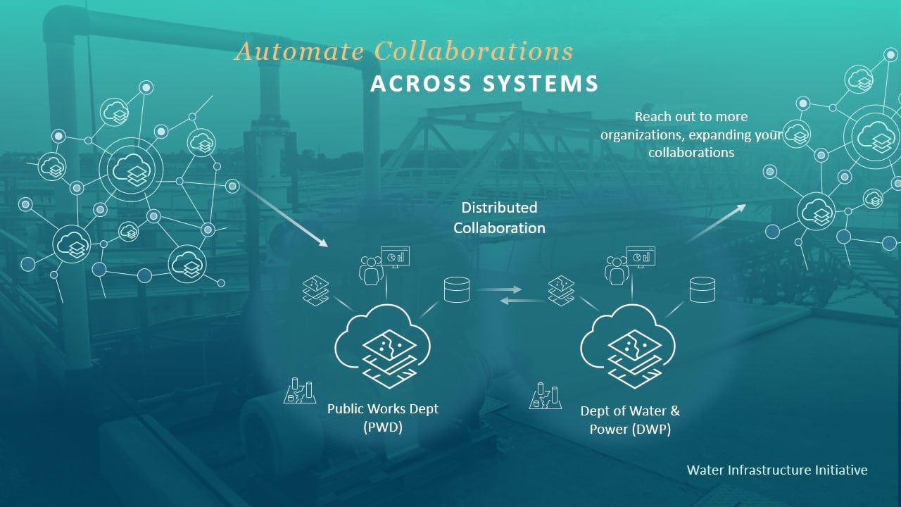 To achieve this workflow, administrators in both organizations have setup their environments to use distributed collaboration where the Public Works department is the host and the department of Water and Power is the guest.