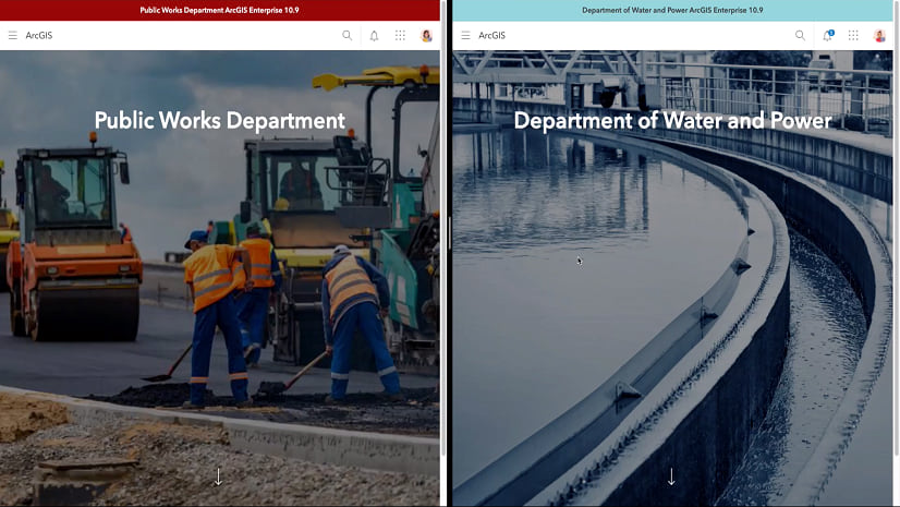 In this scenario, both departments have their own ArcGIS Enterprise 10.9 environments and they need a way to share this information without having to export data or maintain it separately.