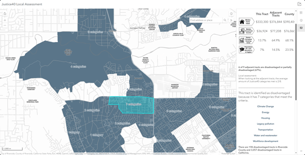 One of the most important pieces of spatial context to consider in a project plan is information about the communities surrounding the work being performed. In the earlier days of spatial analysis, you may have pulled in raw demographic data; however, using the Living Atlas, you can pull in datasets that have already been analyzed and classified to help you make more informed decisions. In our example, because our project is focused on improving water infrastructure. One example of a layer in the living atlas that is of interest to this problem is the Justice 40 layer. This layer contains an index that identifies communities that are disadvantaged according to one or more criteria. For our model, we can use information about whether the community is lacking in water and wastewater investment or has known water and wastewater risks. By overlaying our project boundaries with areas that we know have historically lacked investment we can identify locations where investment will make the greatest impact.