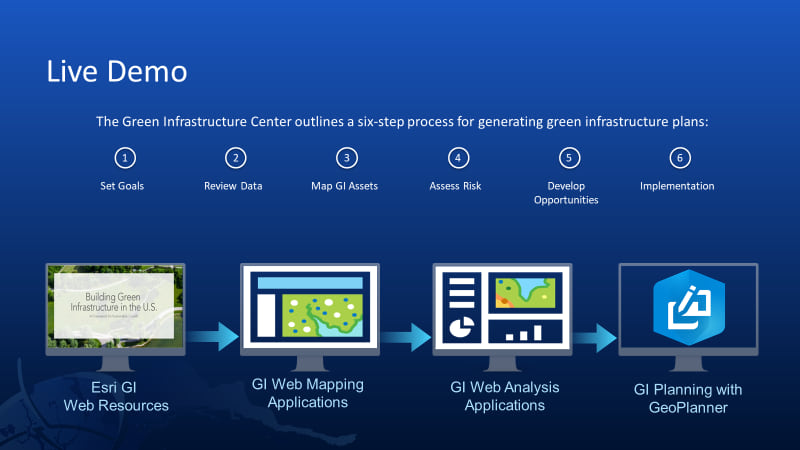 Esri’s Green Infrastructure (GI) initiative is a collection of freely available authoritative geospatial resources, newly generated data, online applications, and downloadable models with the aim of empowering citizens, organizations, and governments to engage in GI work, all while initiating a national vision for GI planning. Join us in exploring this content, including data updates derived from the latest land cover release, that help to identify your regions most valuable natural assets, how they are changing, and where they are being lost. Learn how to access this vast ecosystem of online resources via the Living Atlas and see GI planning in action with ArcGIS GeoPlanner, a premium application for geodesign and scenario-based planning.