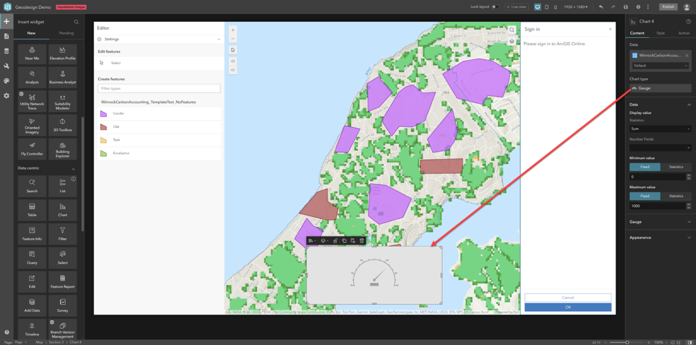 4. In the Edit widget, specify the map you just added. Optionally, add the layer from the map as an editable design layer or use the Import All button.