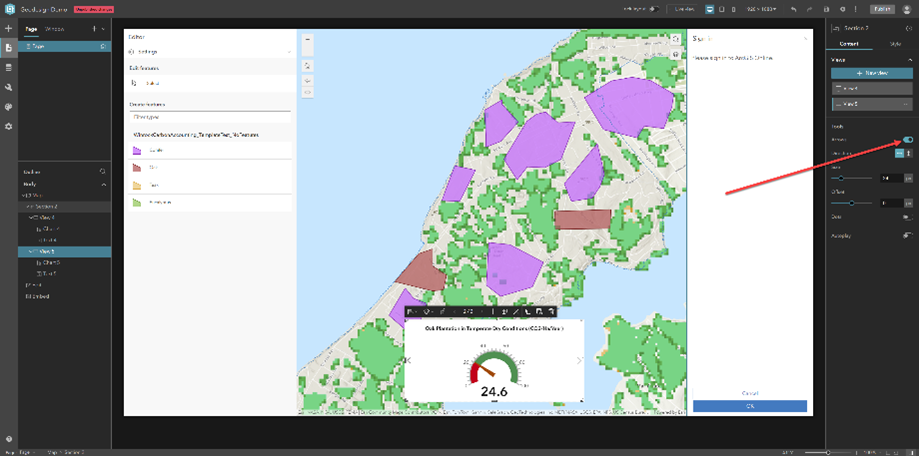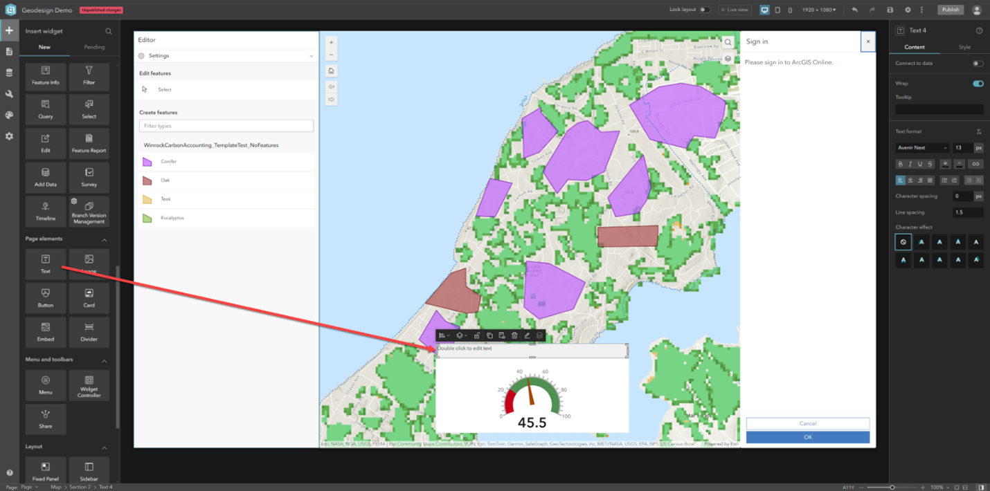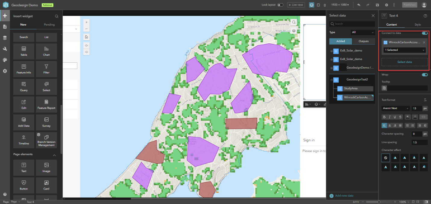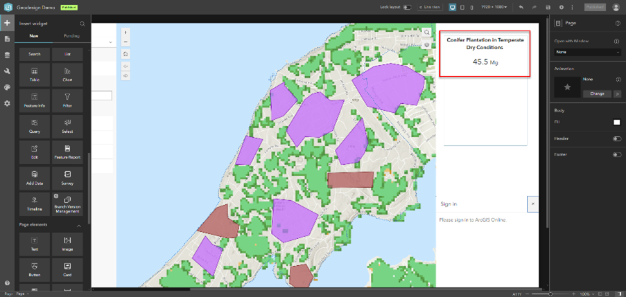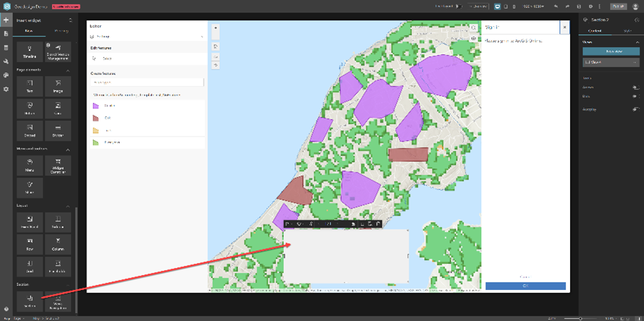 3. In the Map widget settings, choose a web map and confirm it appears in the canvas.