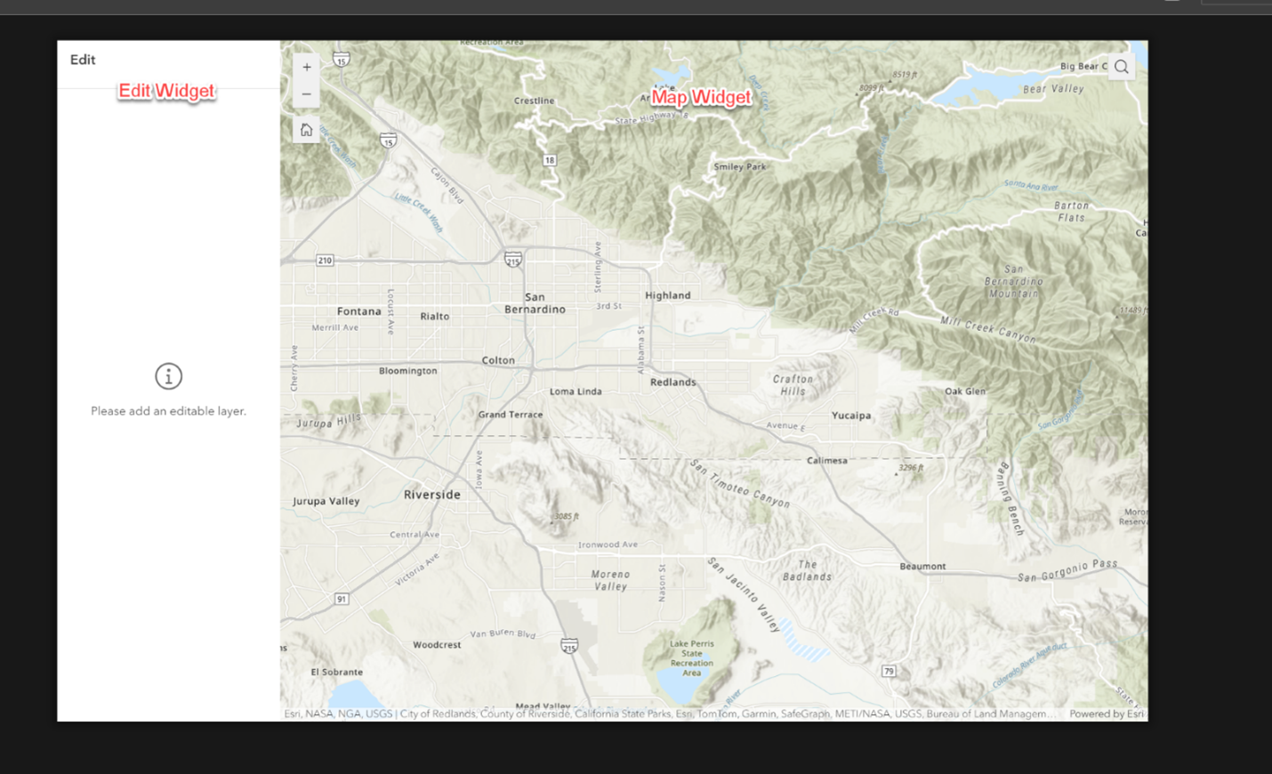 2. Create a new experience and add the Map and Edit widgets to the canvas by either using a template containing the widgets or starting with a blank template.