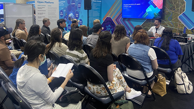 The Open Platform area within the Esri Showcase at the Expo will include four kiosks and a dedicated Spotlight Theater: