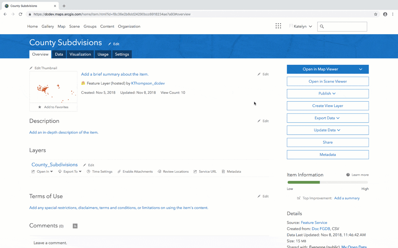 - Find or upload a file geodatabase. Make sure it’s published as a hosted feature layer.