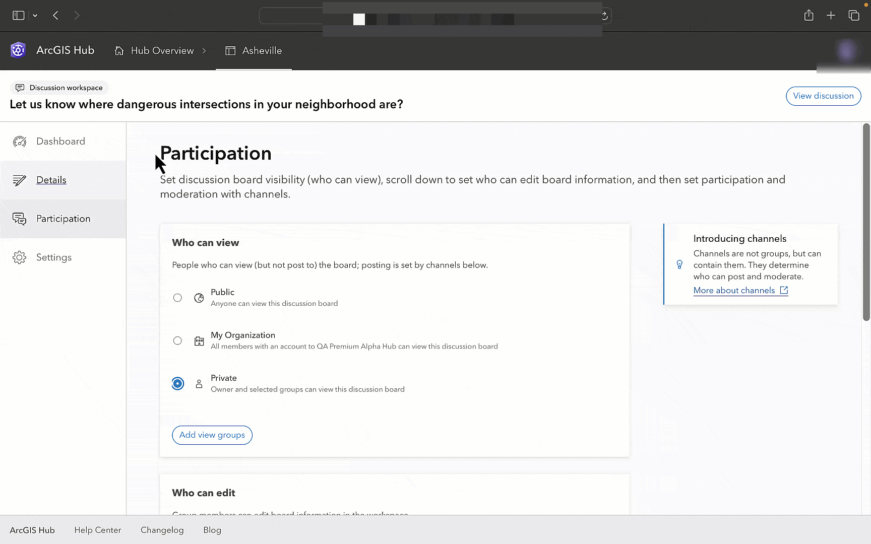 Previously, discussions were limited to a single group. This was a good start, but we also know that many organizations have a wider variety of participation needs that support public input, cross-group collaboration, and delegated moderation. Now, channels can have many participation groups.