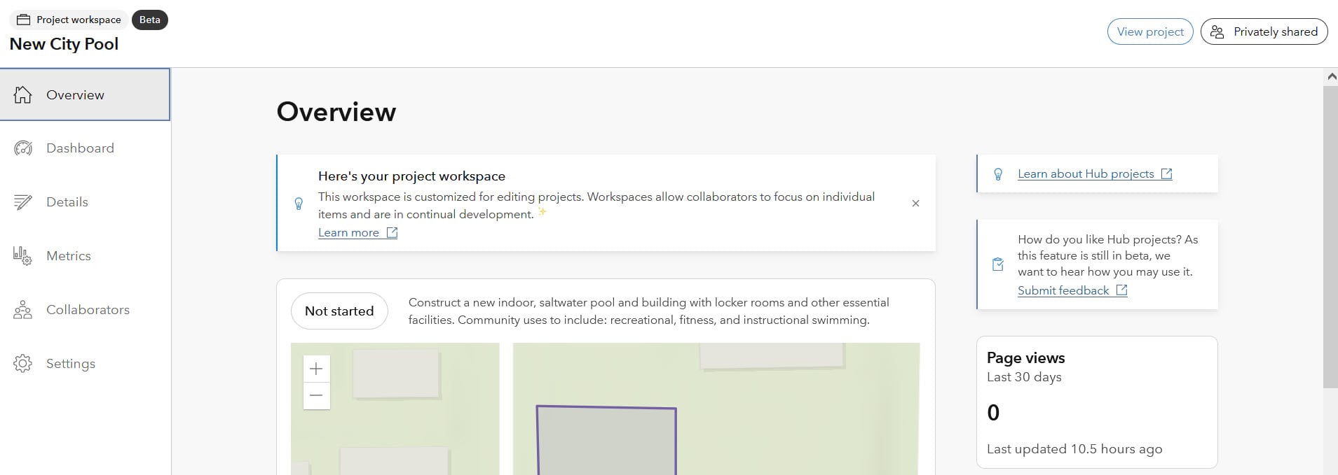 With the release of projects, we introduced a new interface to edit and manage them. This is the project workspace, which you will be able to use to configure other key Hub items in the coming months (see ‘Workspaces’ below).