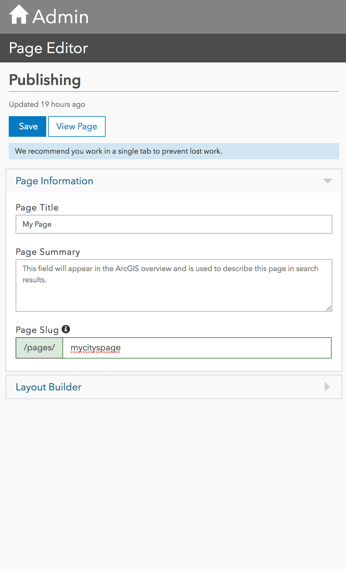Adding pages to your site gives you more space to focus on particular content. Keep things consistent across your organization’s web experience with the option to specify page slugs (the text at the end of your page’s URL).