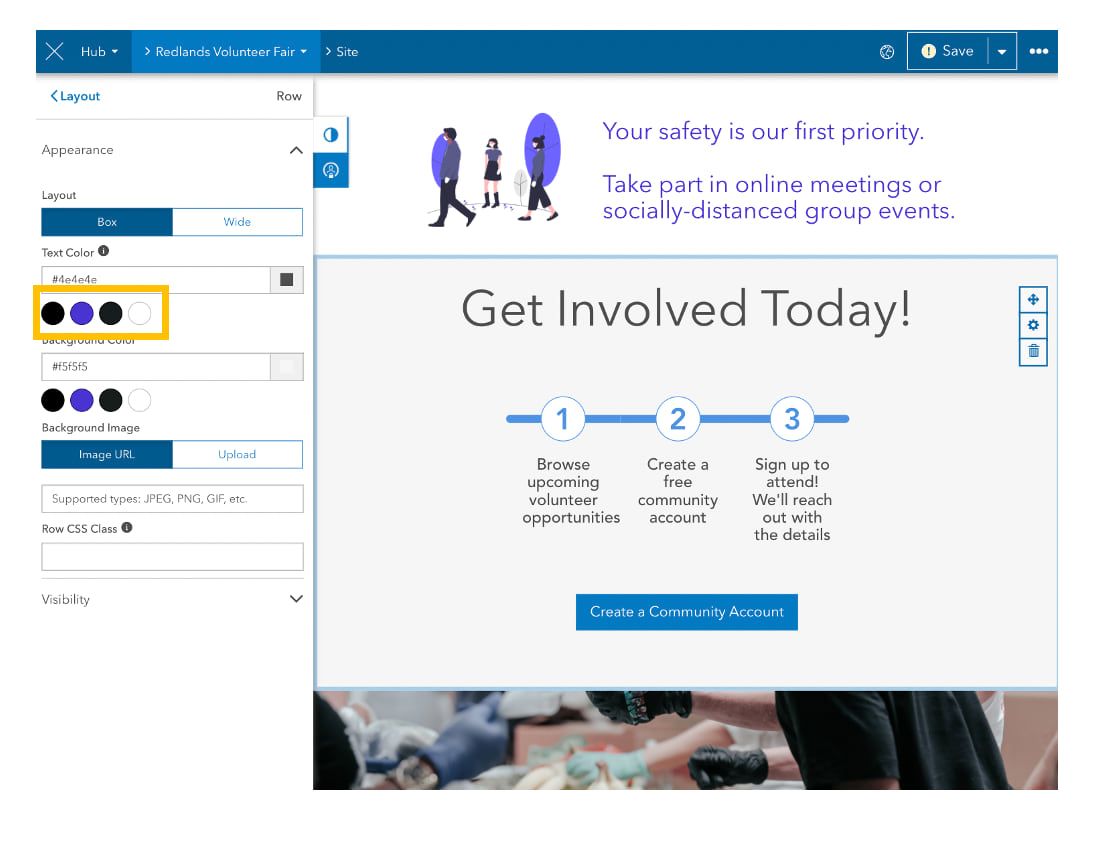 Need to share a web map or survey with a specific group of people? The site’s editor now includes Row Visibility, a tool that you can use to control who can see certain parts of a site or page.