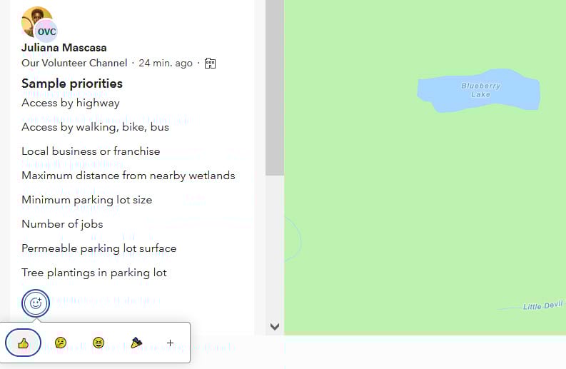 You can have discussions that are map-based to facilitate focused conversations. This will allow dialogue that is specific to defined locations, ensuring that information shared is pertinent to the topic. Whether a neighborhood, city, or broader region, you can exchange ideas and make informed decisions in a geographic context.