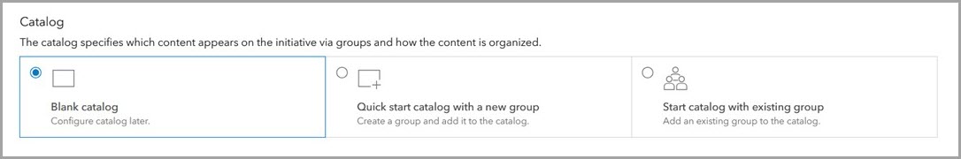 Note, with a Hub Premium license, sites, initiatives, and projects all have catalogs for content and events. If you selected the quick start catalog option when creating the initiative, you already have a configured content catalog.
