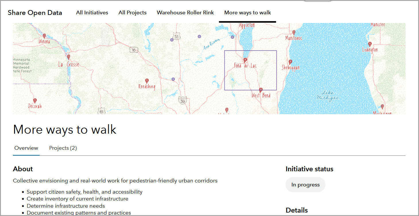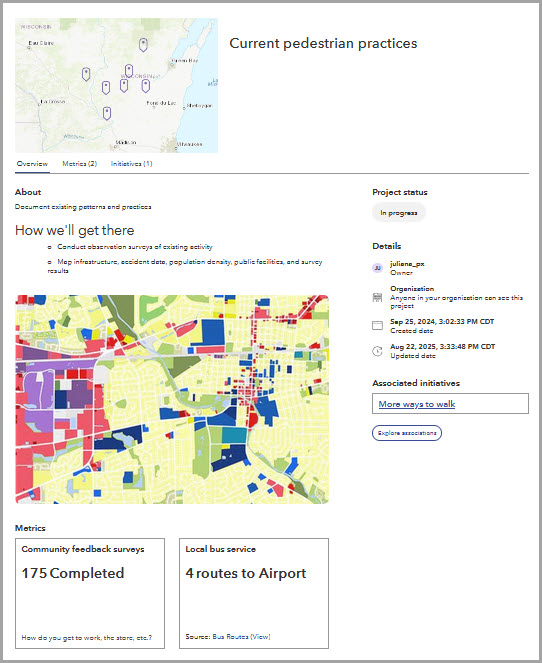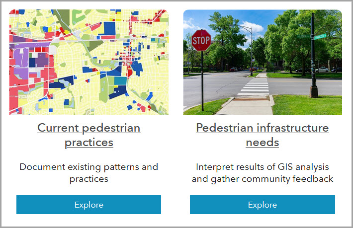 Let’s say you want to conduct an inventory of pedestrian practices around the city. This project is related to the walking and fitness initiative we worked on above.