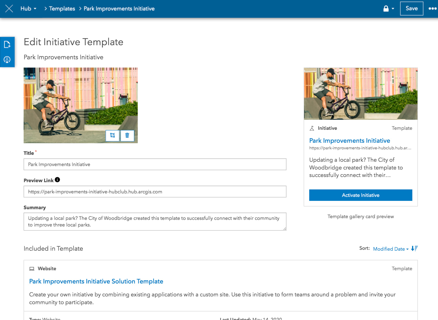 Now you’re ready to take things at scale with the proven formula. When you get to this step, we want ArcGIS Hub to make it easy for you to turn your hard work into a repeatable template that can be shared to the right audience and then activated as many times as needed.