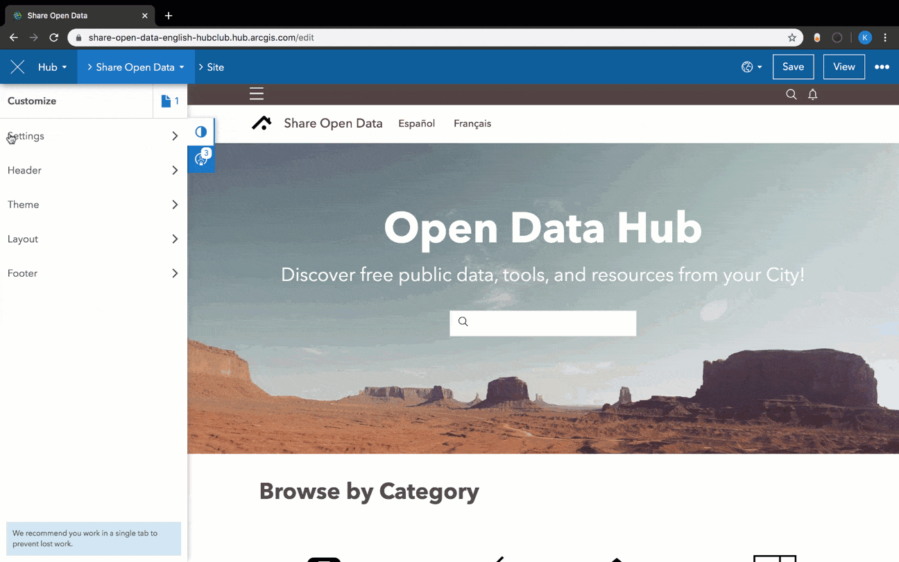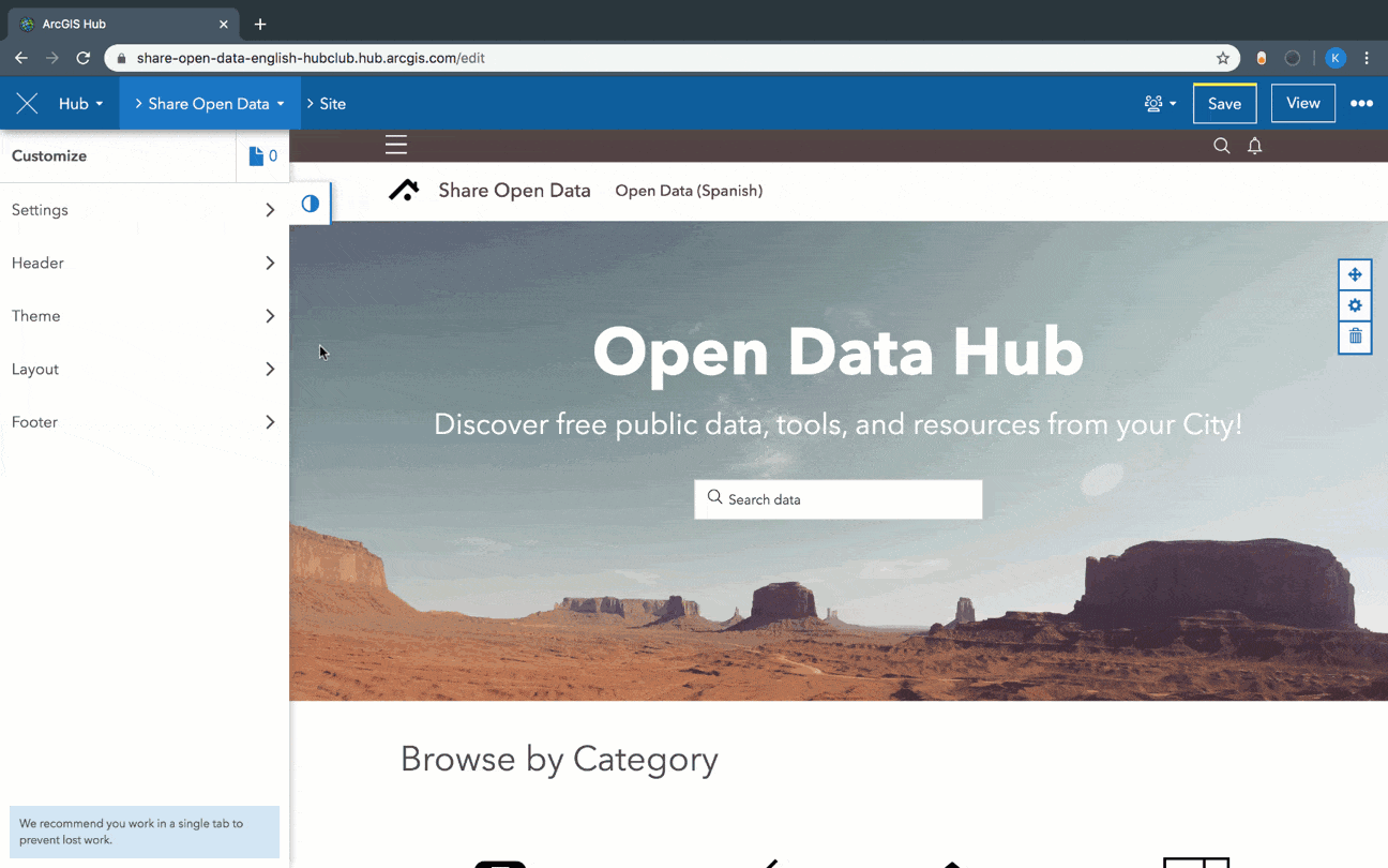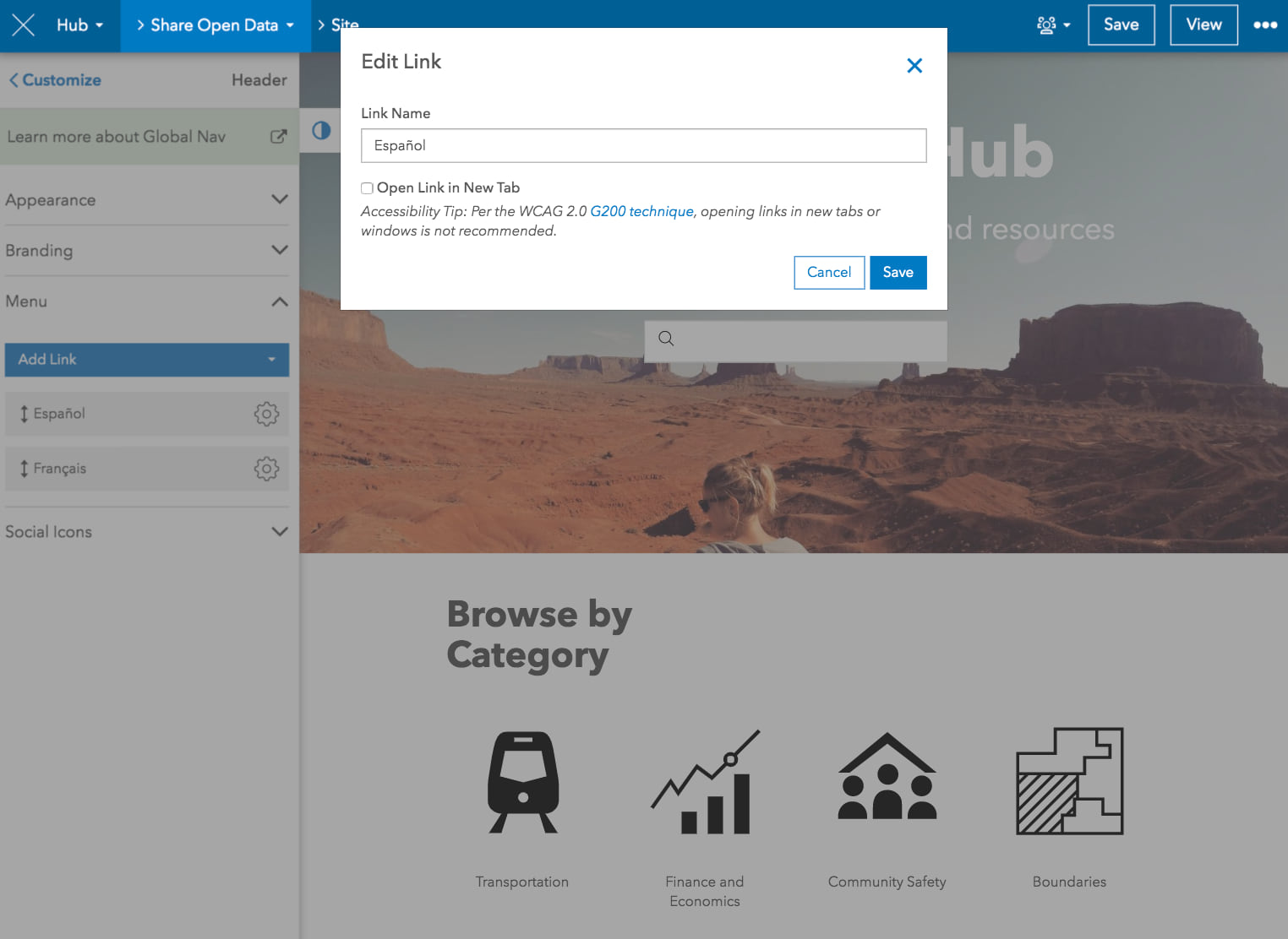 Hello, @Katie Thompson Great post! I still have a question though. We are currently building an open data site with many pages in the Czech language and we would like to have the English version as well. Using the option of cloning our site, translating pages to English, and then connecting them to the main Czech site still creates problems if I understood the guide right. Our header is more complicated than just buttons with various language mutations. We have apps button, analyses button, and so on… Names of all these are different in Czech compared to English, but the English pages that we connect to our main site will retain that’s site header which is in Czech and that is a big problem. Do I understand it right? I noticed in Fredericton’s case(http://data-fredericton.opendata.arcgis.com/) that they were able to change the name of the Menu button from English to French but I also noticed that their URL domain has changed as well and that’s something we don’t want either. We basically want the URL to stay the same but the header items should change the language as well. Is there any way around the problem? Thanks a lot, Katie and have a nice beautiful weekend!