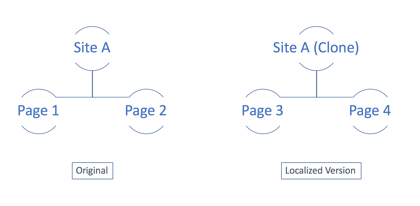 A clone is essentially a copy of your original site, so you don’t have to recreate the site. You just have to swap out the existing copy with localized copy.