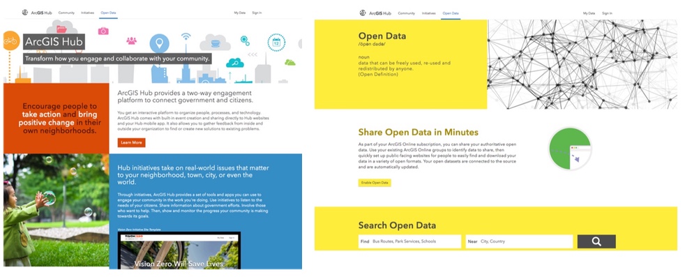 ArcGIS Open Data remains a freely included and powerful capability of the ArcGIS platform. Within minutes, anyone can publish authoritative data through custom designed websites and pages. ArcGIS Open Data sites are now created and managed in ArcGIS Hub – starting our existing ArcGIS Open Data publishers on the journey to becoming a Hub for their communities.