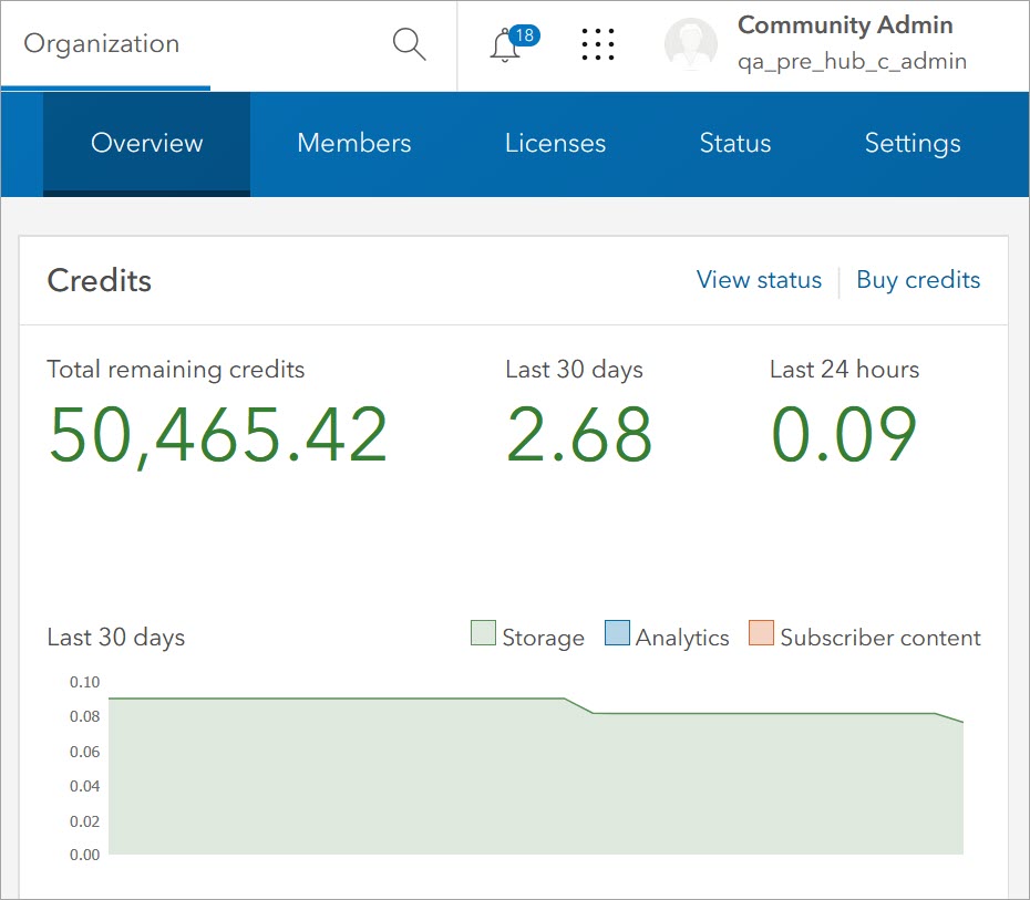 Community administrators can view and manage member activity in ArcGIS Online (Organization > Overview and Members tabs, Groups > My organization’s groups tab). This may mean limiting the number of accounts, monitoring login frequency or credit usage, or auditing the number of active groups. For detailed steps, see how to Manage members.
