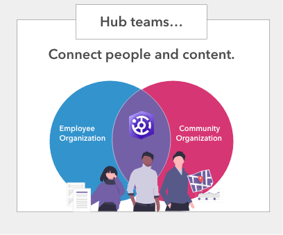 These groups work behind the scenes to help you manage members and store the items (content) that you create or upload to your hub.