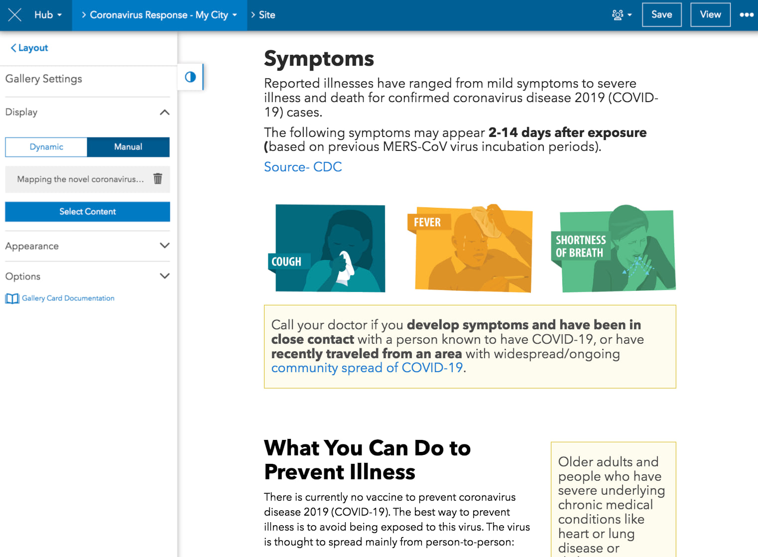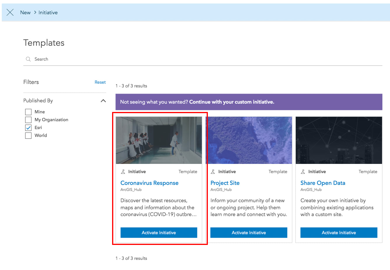 To help even more organizations share critical updates about local response efforts, the Coronavirus Response template from ArcGIS Hub is now available to all ArcGIS Online customers.