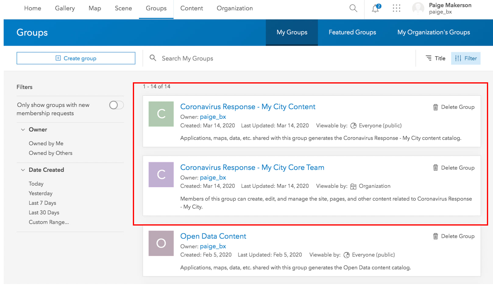 In early April, two additional Covid-19 templates were released. The Coronavirus Business Continuity template and the Grocery Store Inventory template. These templates are available to all users, regardless of which license of ArcGIS Hub they’re using.