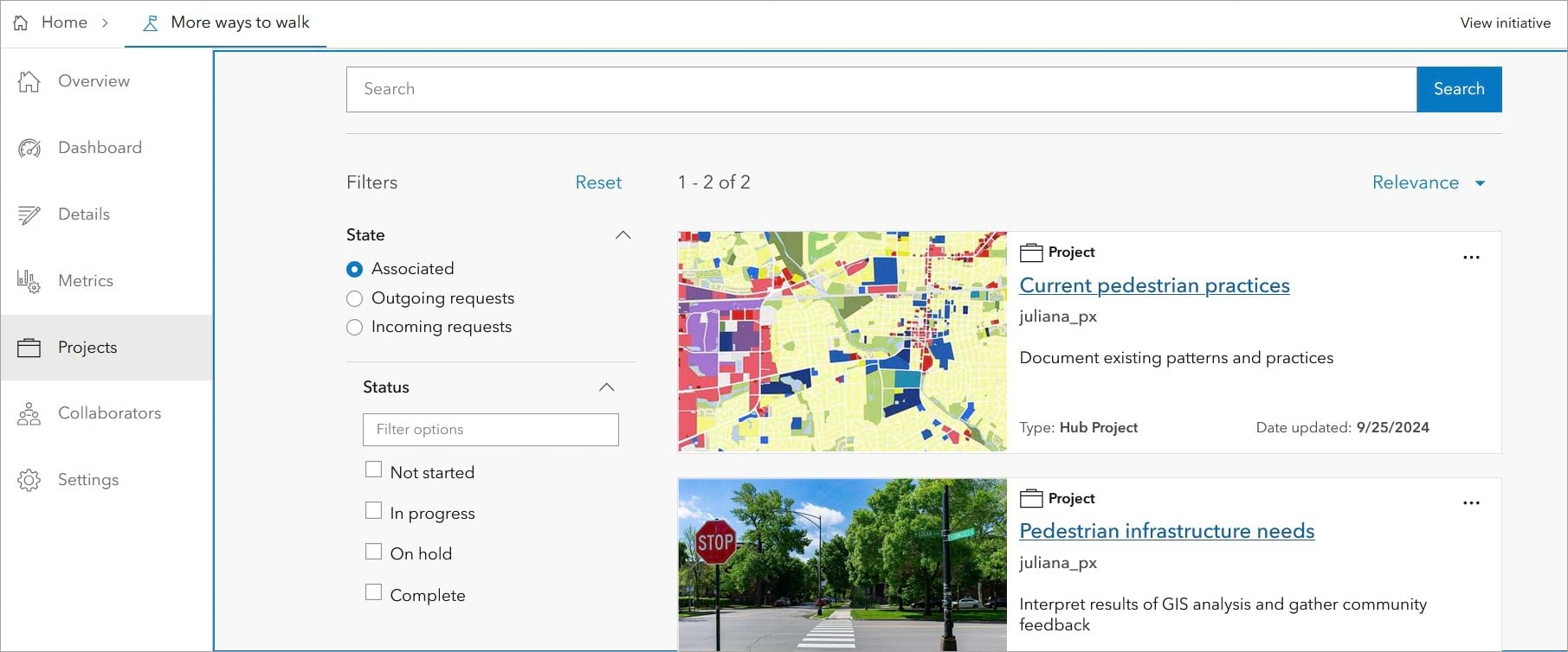 To start using redefined initiatives, just opt in to workspaces, the new interface for managing items in Hub. Each user can opt in from their user profile to begin using workspaces. Read more about Workspaces (beta) now available in ArcGIS Hub (Esri Community post).
