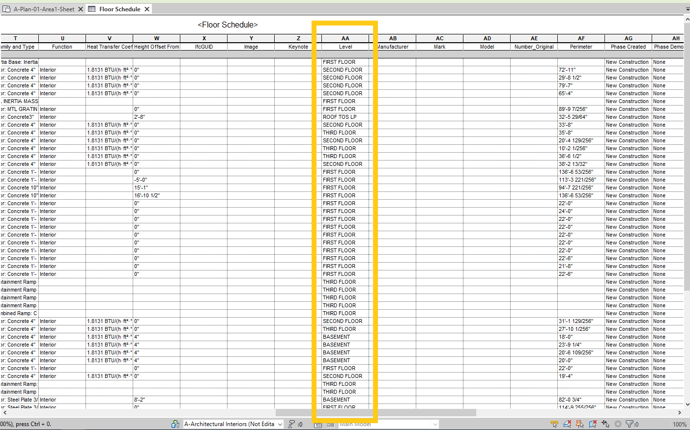 Based on the previous step, a new tab was added to the top of the Revit workspace called ‘Floor Schedule’