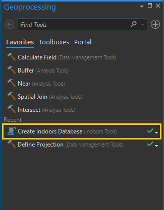 Open the geoprocessing pane and search ‘Create Indoors Database’.
