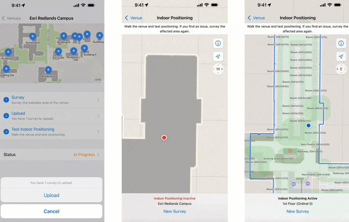 Once Apple has georeferenced the IMDF file, you can survey your building and configure indoor positioning.