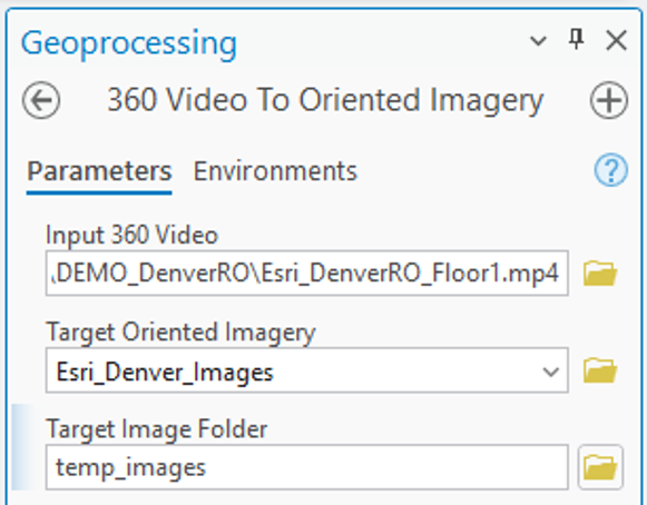 - Tool Reference: 360 Video To Oriented Imagery (Indoors)