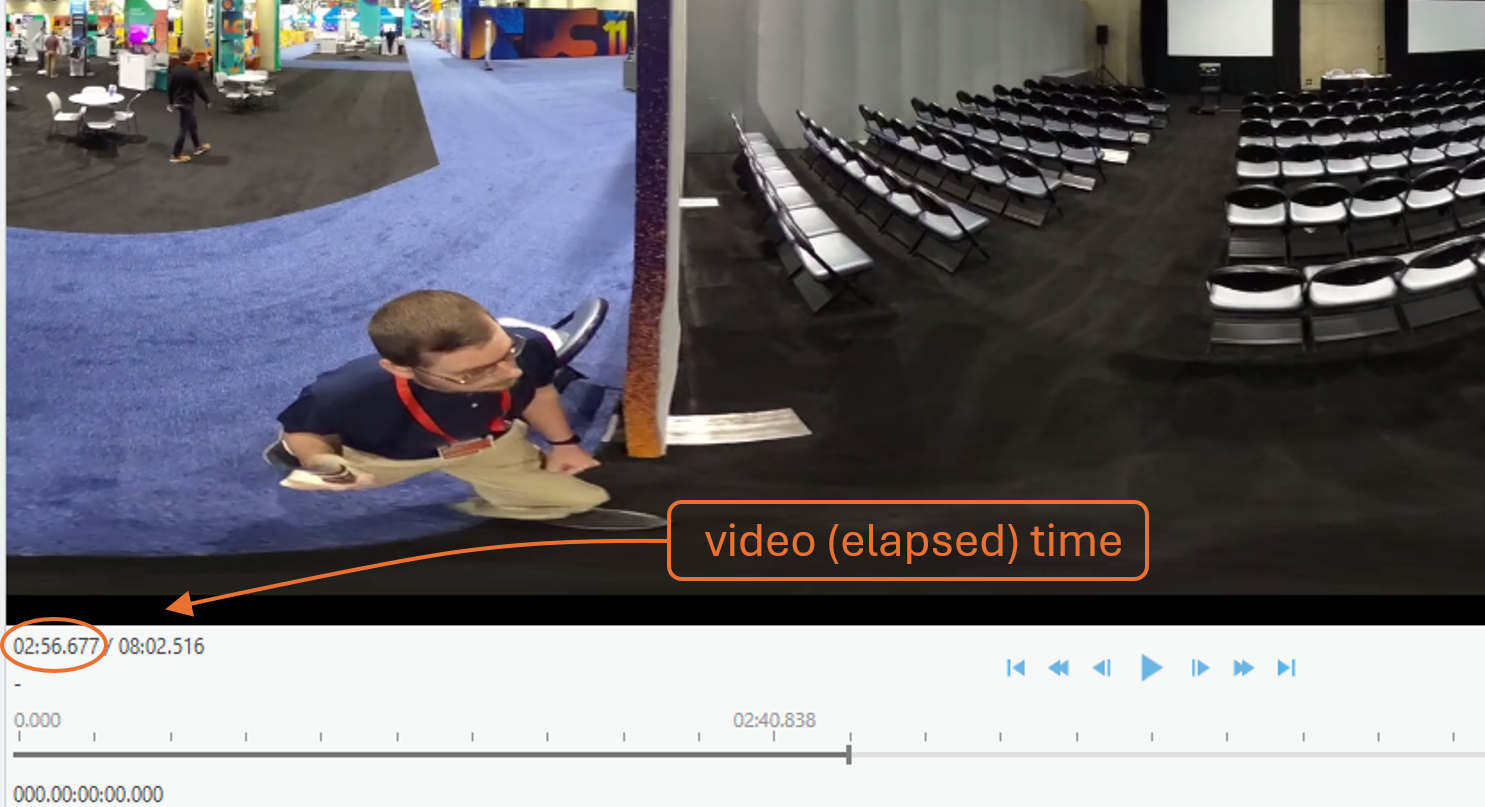 1. Open the video in ArcGIS Pro’s Video Player (available with the Image Analyst extension) or another player that shows playback time to the millisecond.