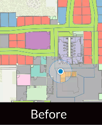 For indoor positioning experiences, such as guiding occupants or visitors within large facilities, it is essential for the blue dot to realistically follow indoor paths such as corridors, rather than appearing to pass through walls or other obstacles. To achieve this level of reliability, geometry-aided indoor positioning was introduced, which leverages floor plan geometry, such as walls and columns, to refine position estimates by preventing movement that crosses physical barriers.