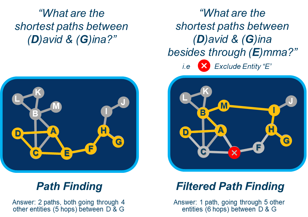 Users can now… select the “Filtered” option to open up a pane and define specific constraints for the potential shortest paths you want to return between target entities, including constraining by any of the following: