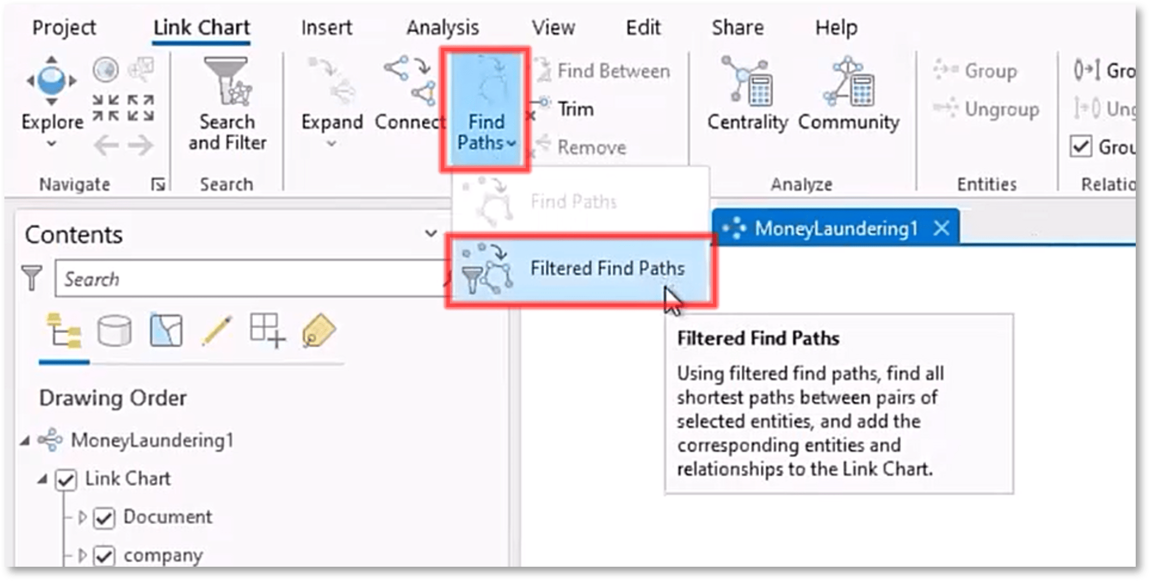 Users could previously… find all the shortest paths between multiple selected entities in the Link Chart view by clicking a button.