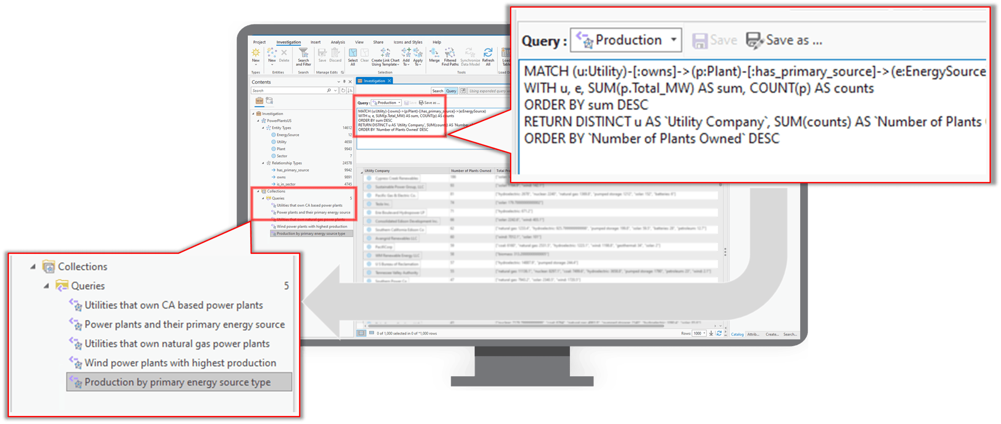 This feature offers analysts the ability to save OpenCypher Queries to a “Collection” in their Investigations to improve the ease of use in ArcGIS Pro for conducting and sharing analyses across analysts.