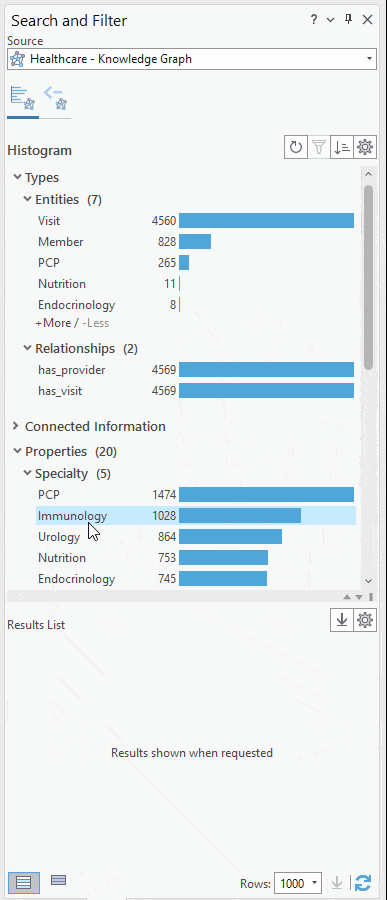 - Drill down by specific entity types, relationship types or properties