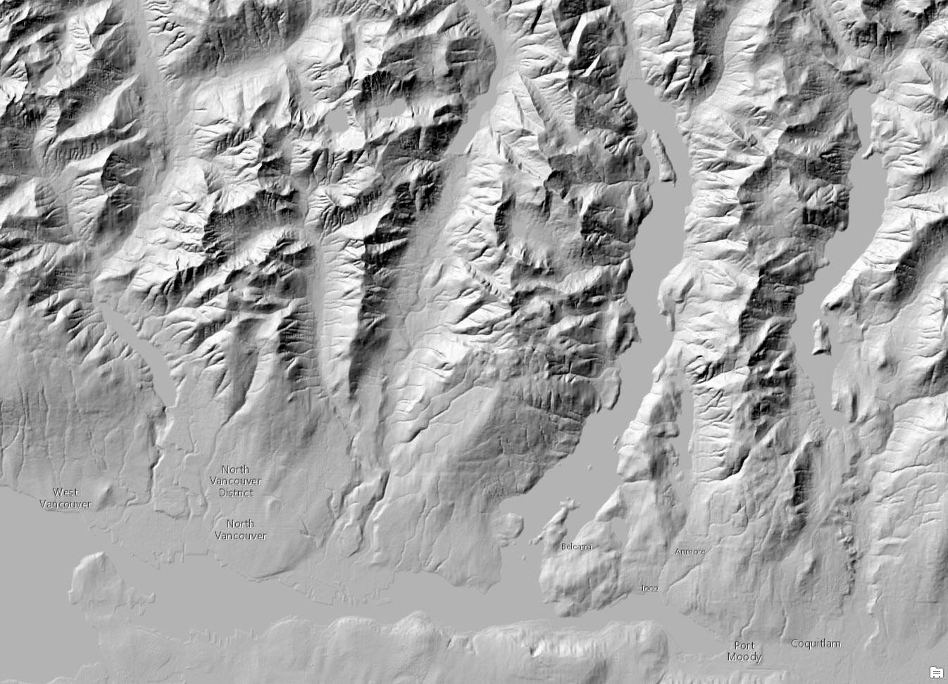 Figure 2: A portion of Vancouver, Canada showing NED 1 arc sec (~ 30 meter) from USGS.
