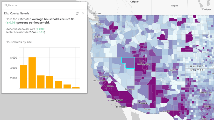 When the new ACS figures are released by the Census and updated in Living Atlas, the Living Atlas team updates all 112 feature layers within a few days. We recommend that you check your web maps that use one of these ACS layers to see where you need to make updates to your map’s symbology and pop-ups. If you are using an ACS layer from Living Atlas and have not modified it at all, then you will appreciate knowing that your layer has already been updated, with new data, updated symbology, and updated pop-ups.