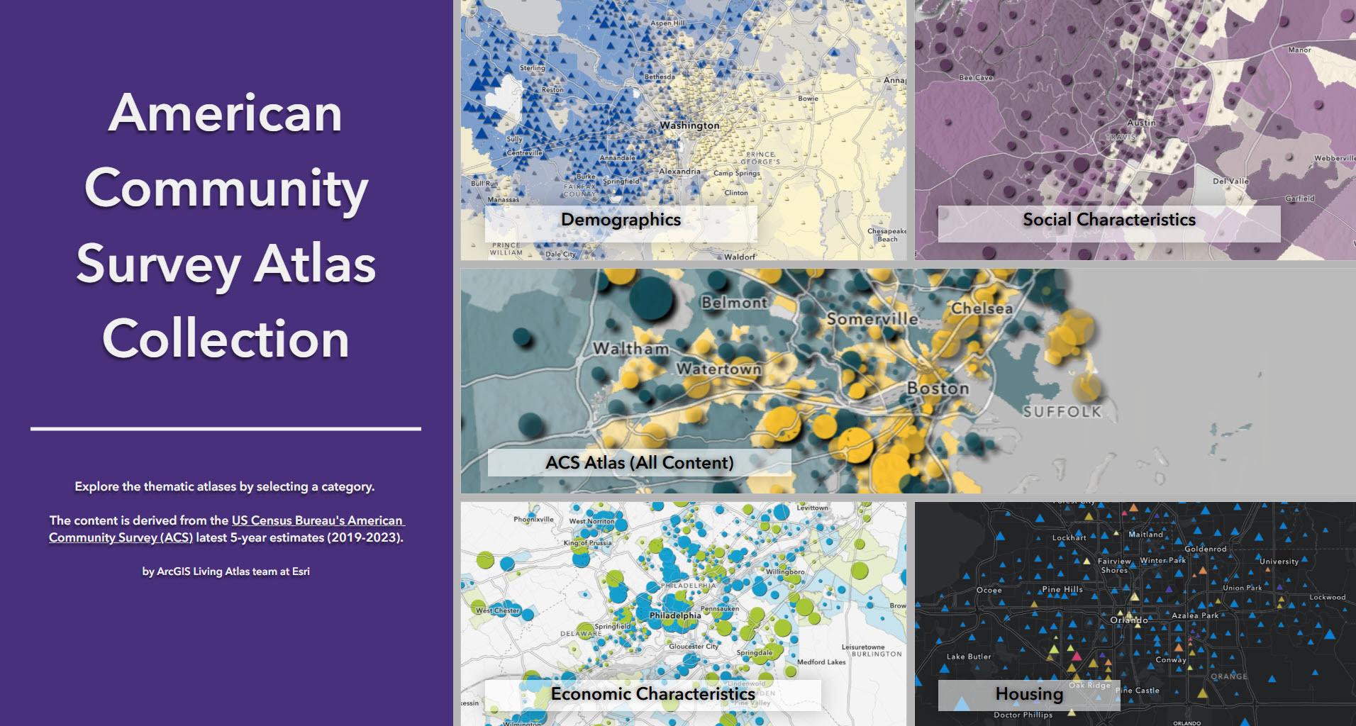 The ArcGIS Living Atlas Policy Mapping team provides the GIS community with a collection of free layers that contain a wealth of data from the U.S. Census Bureau’s American Community Survey (ACS). On December 12th, 2024, Census released its updated five-year estimates (2019-2023). Within days, the Policy Mapping team updated the set of ACS layers already available in Living Atlas with the newest data. Any maps and apps that already use these layers automatically update to reflect the most recent Census ACS data.