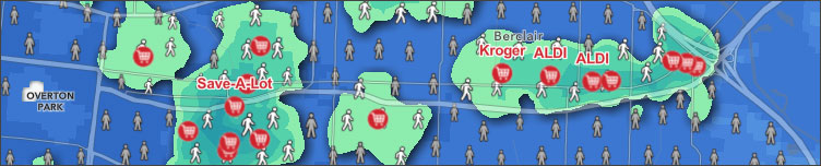Grocery Access in the U.S. and Puerto Rico shows which areas are within a ten minute walk or ten minute drive of a grocery store in the United States and Puerto Rico. Enter a ZIP code, city, or point of interest to learn how many stores people can reach in a 10-minute walk or drive. Interactive charts update as you move around the map or draw shapes to show the population within walkable access.