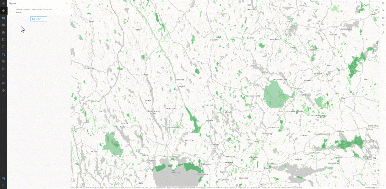 Another way to utilize the flexibility of this basemap is to use only one component layer. For example, we had many requests for a surface water features only layer, that users could drop on top of their landscape themed data, or use it as a starting point for building your map. This is now possible with the Environment Surface Water and Label layer. You have the ability to single out the surface water features in the map, and add them to any other webmap.