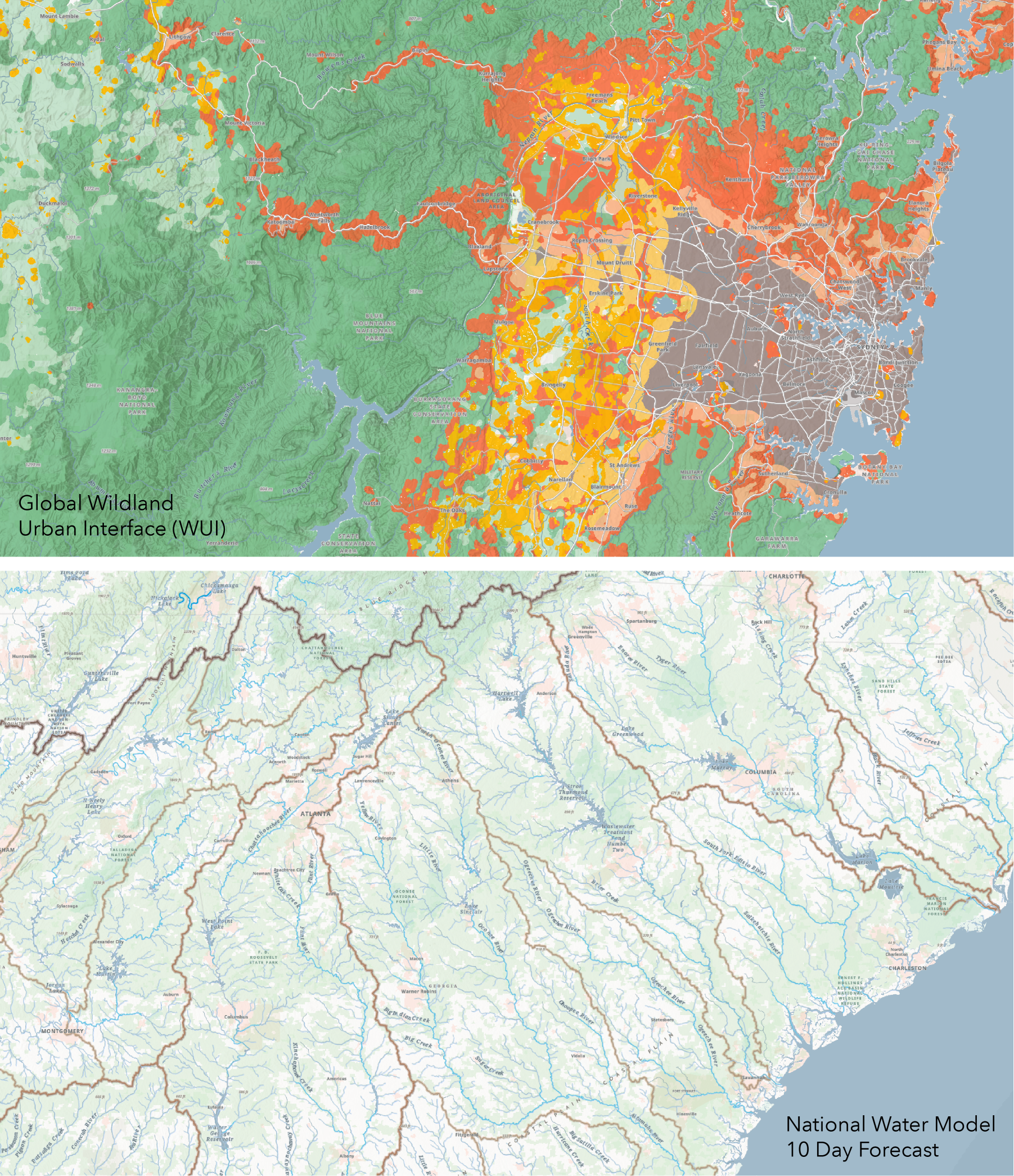 For example, you might want to turn off the Watersheds in your map about Global Wildland Urban Interface, but keep them on in your map about the United States National Water Model. Watershed Boundary information could help us understand our physical geography in some cases, but in other cases it may not be as relevant. Offering this map in multiple layers gives you the flexibility to make it work with your data.