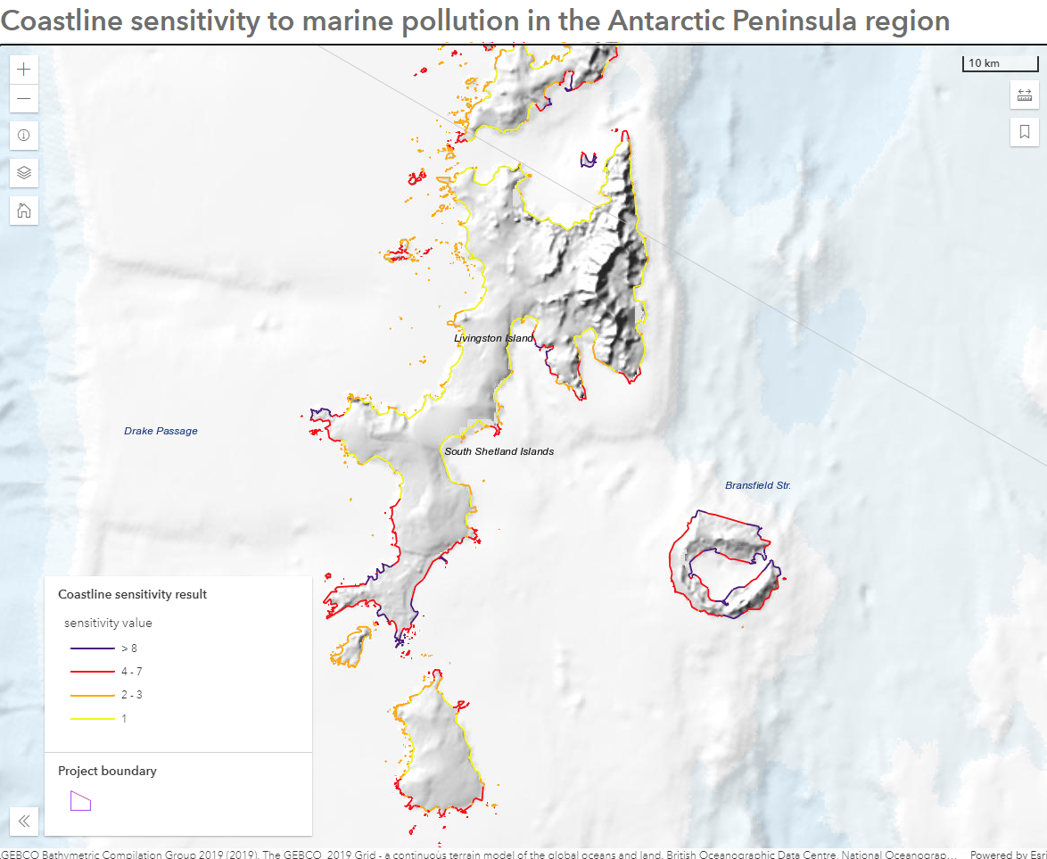 More recently, BAS used the ADD coastline data to assess the sensitivity of different sections of the Antarctic coastline to marine pollution events. To aid this analysis, various parameters such as the location of wildlife nesting sites and scientific research stations were used in the model to calculate the output sensitivity. This work was presented in the Antarctic Treaty Consultative Meeting in May 2022. You can check out the results in this app.