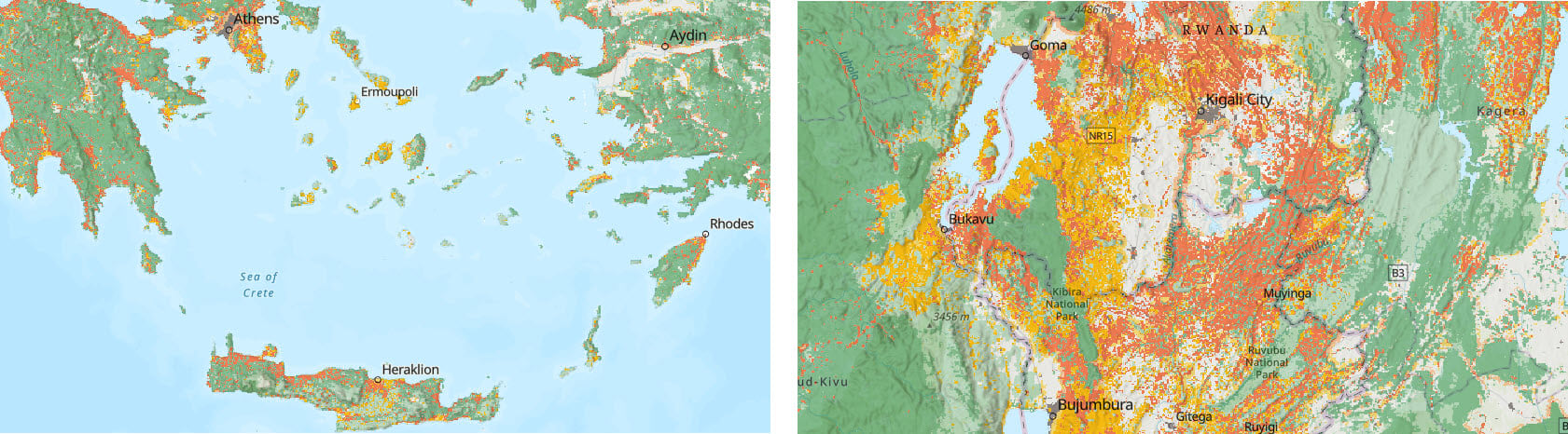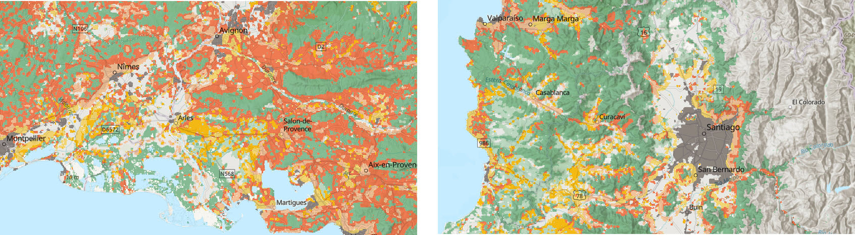 The Global WUI tiled imagery service is a 10-meter dataset produced by SILVIS lab at the University of Wisconsin-Madison. It maps the areas around the world where human activity interfaces or intermixes with wildland vegetation.
