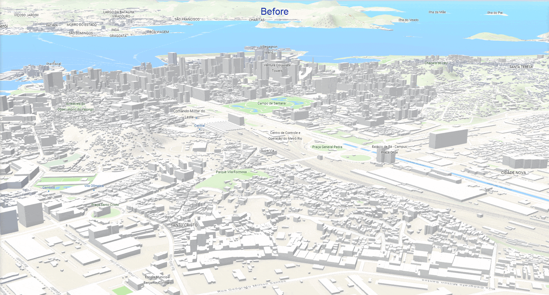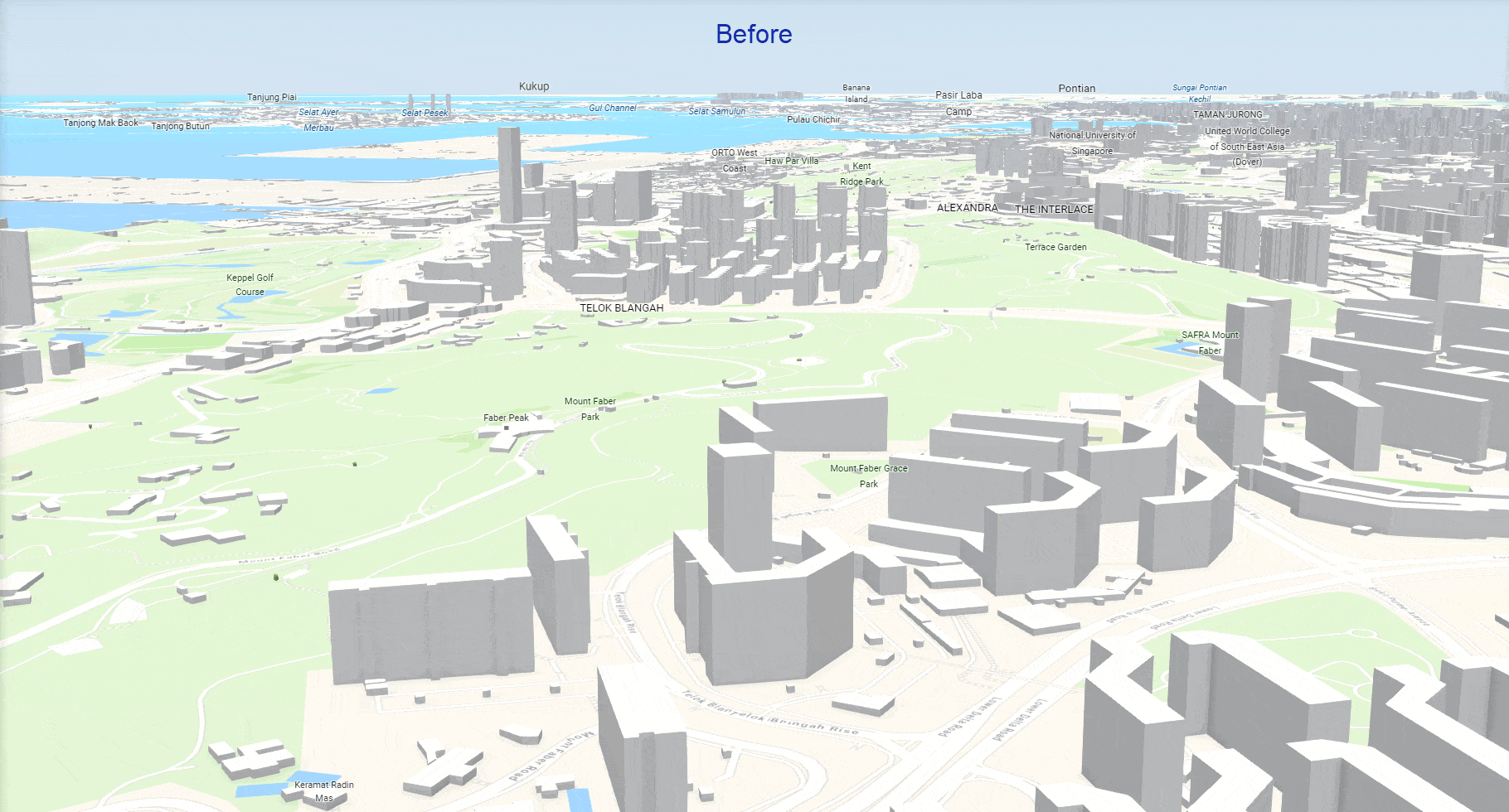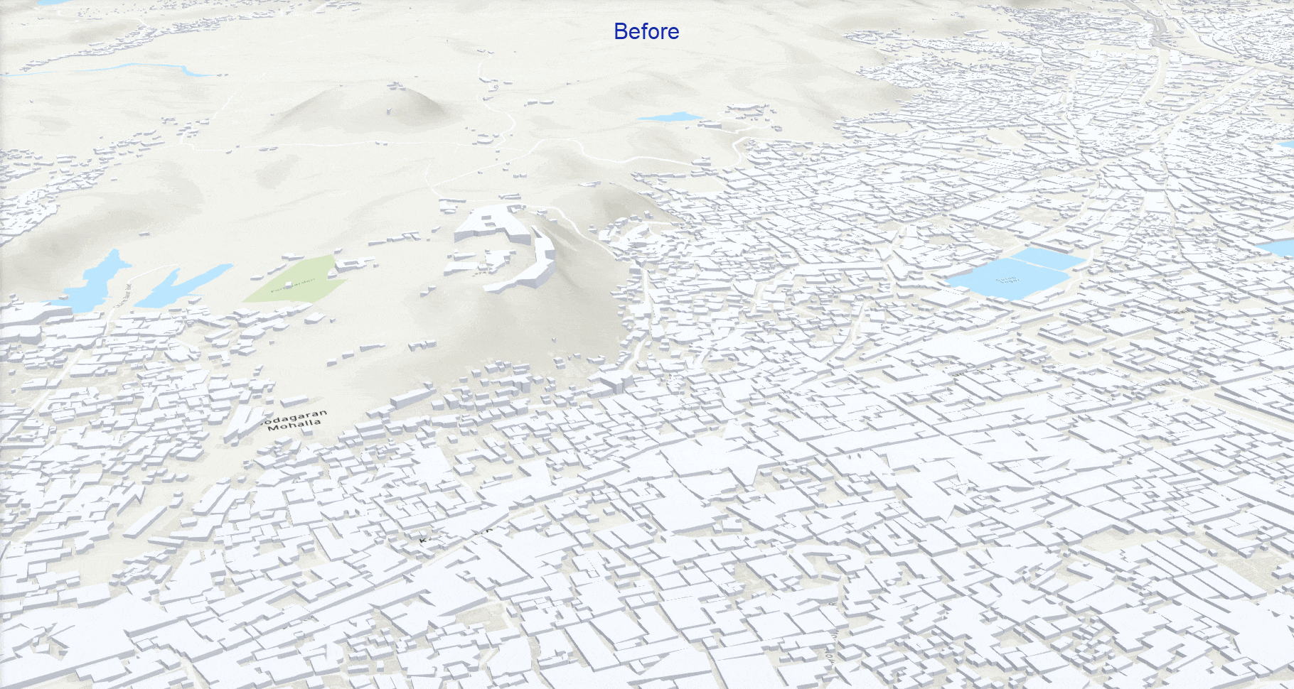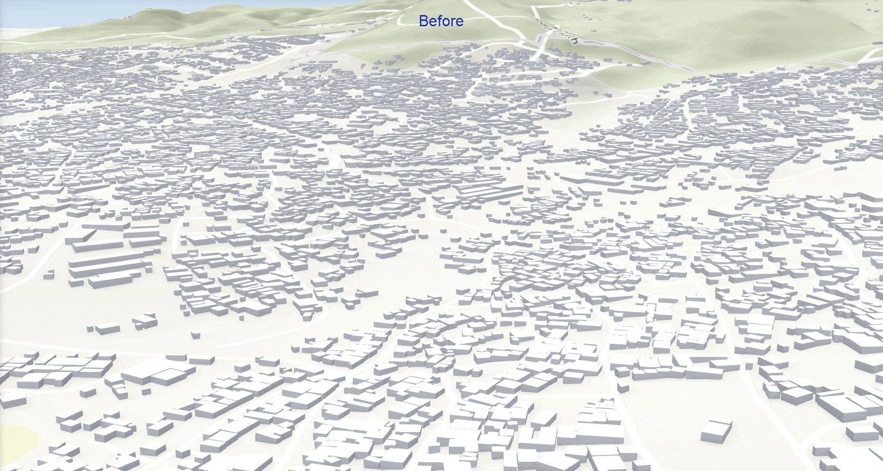 Let’s see a few enhancements in World Hillshade and Terrain3D with Maxar Precision3D in 50 cm. The 3D buildings in these examples are from Esri’s global building service, which is created from many data sources.