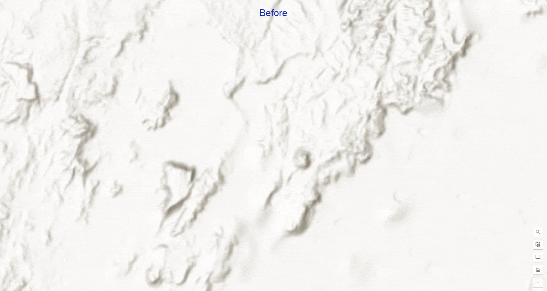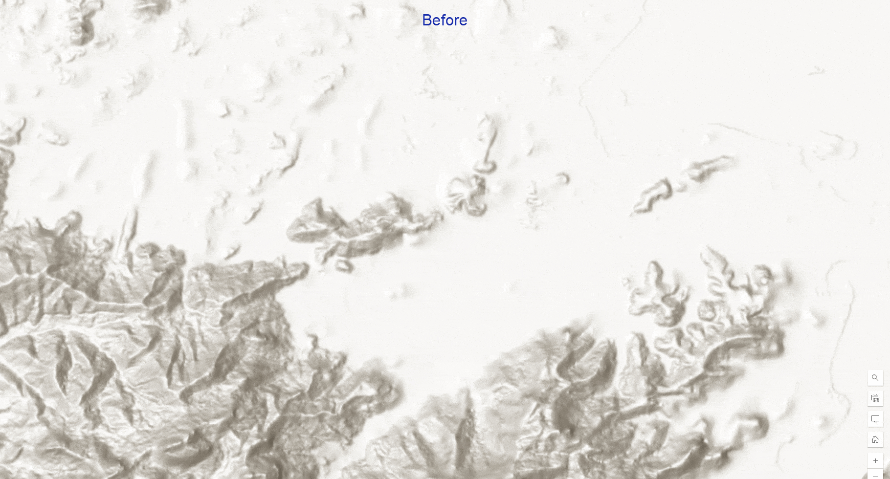 To further improve over WorldDEM4Ortho, we are excited to share that the Terrain 3D, TopoBathy 3D, World Hillshade and World Hillshade (Dark) layers are now enhanced with bare earth elevation data from Maxar’s Precision3D for parts of the globe. The Precision3D Digital Terrain Models (DTM) at 50 cm resolution are created by pairing Maxar’s extensive archive of high-resolution satellite imagery with the company’s patented 3D technology.